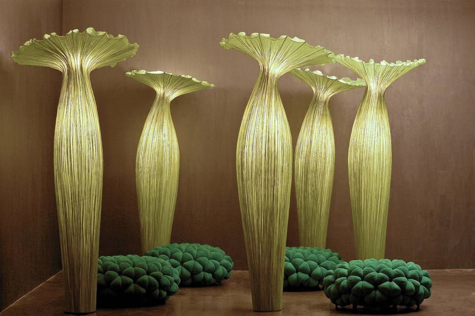 The 6-foot-tall lights in Serfaty’s Morning Glory collection are made of molded silk. Photo by Albi Serfaty