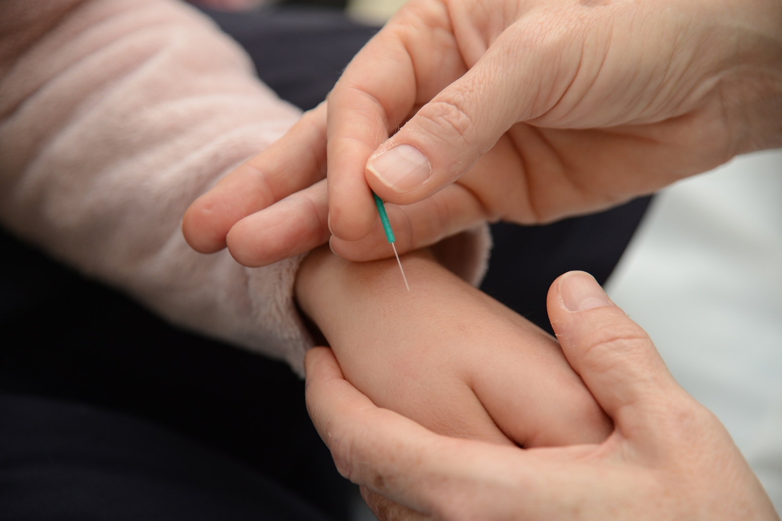 A pediatric patient at Barzilai Medical Center receiving an acupuncture treatment. Photo: courtesy