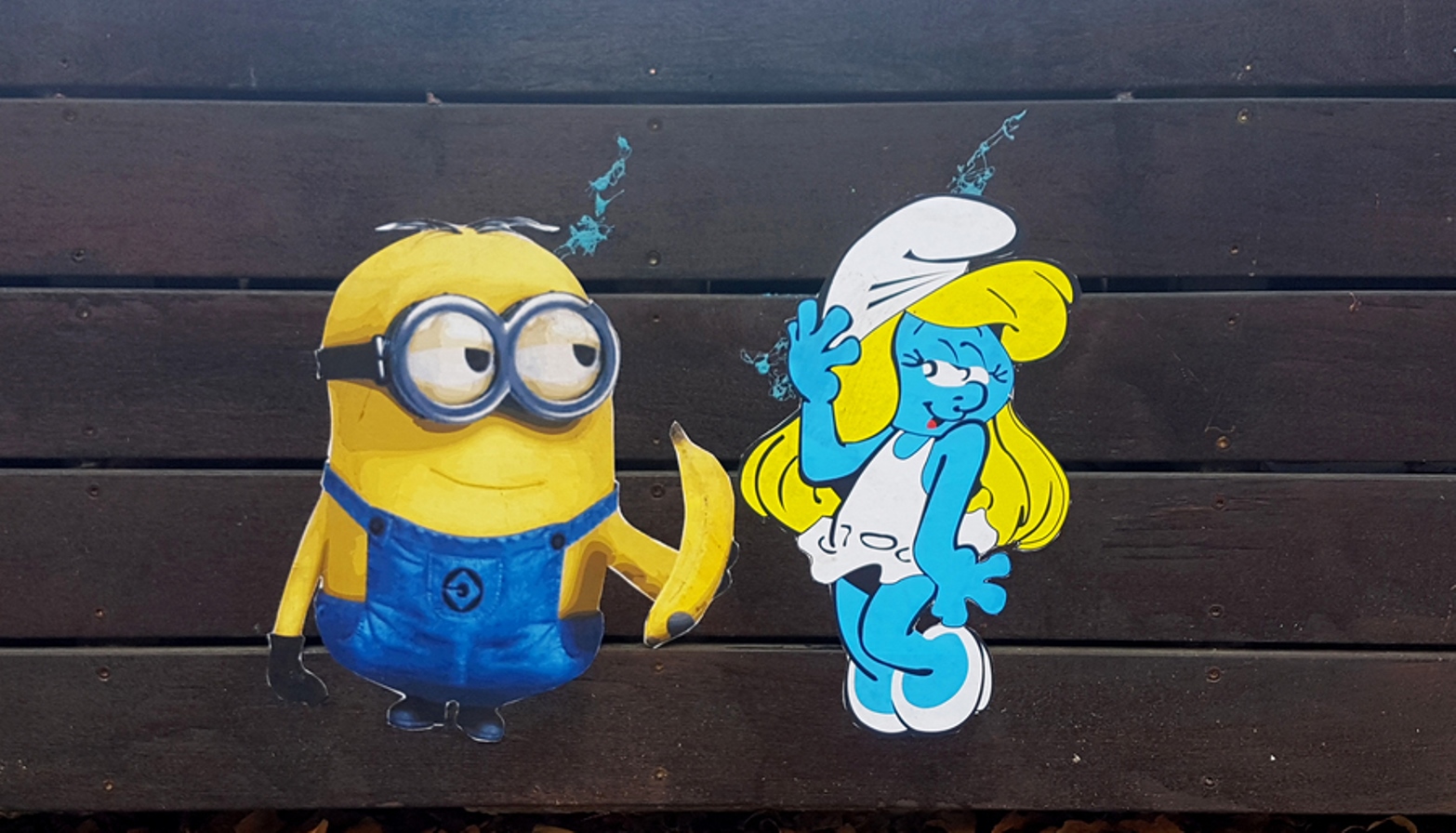 Beadwork, knitting and other 3D elements are seen in the works of artists such as Mr. Leaf (Mati Ale) and Yifat Raz, who places patches of velvet or fake grass to create petting corners around Tel Aviv.