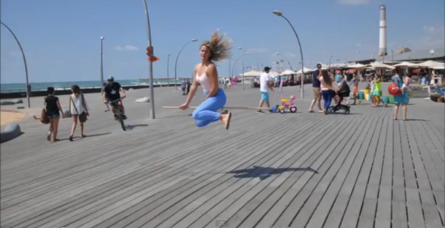 The stop motion YouTube brooming craze has come to Israel, and the first local clip couldn’t be better. The Israeli version titled ‘Witch From Tel Aviv’ shows Patricia Maya Wilczak – until now, just another Tel Aviv resident — riding a squeegee in the city’s Port area.