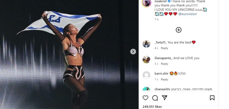 The Israeli singer later took to Instagram to thank her fans. “I have no words. Thank you, thank you, thank you! I love you my unicorns.”