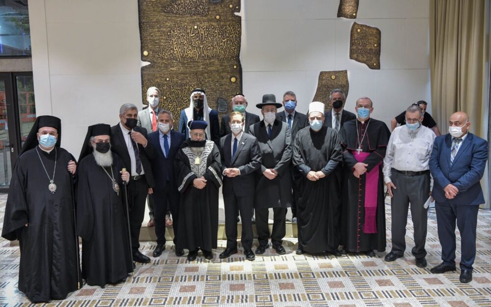 President Isaac Herzog was joined by Israel’s Jewish chief rabbis, the Greek Orthodox Patriarch of Jerusalem, the Latin Patriarch, the president of the Muslim Shari’a Court of Appeals, the Druze community leader and the Secretary-General of the Baháʼí Movement in Israel, as well as the health minister and the government’s Covid coordinator.