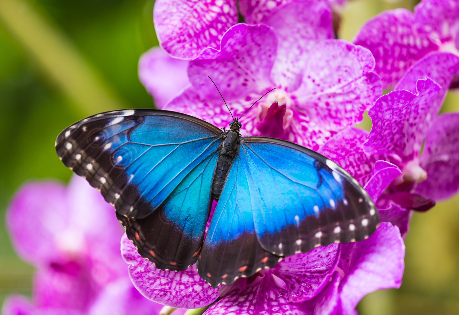 At least 110 species of butterflies call Israel home. However, most of the butterflies in the exhibit — such as the blue morpho, shaded blue leafwing and Belus swallowtail — come from South America and arrive as pupae via air transport each week from a supplier in the United Kingdom.