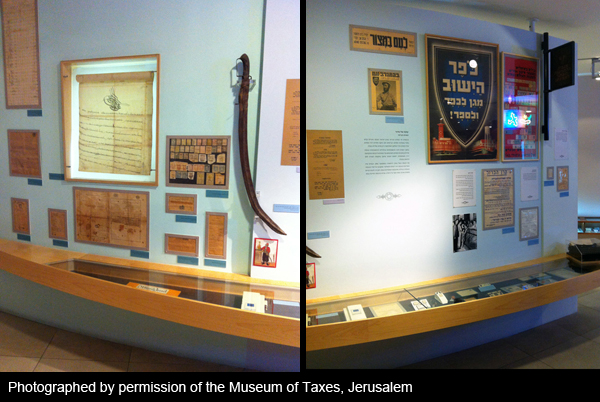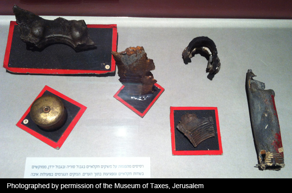 The Museum of Taxes is located at 42 Agripas St., Jerusalem. Visiting hours by appointment only. Call: 02-6257597 or 02-5317332