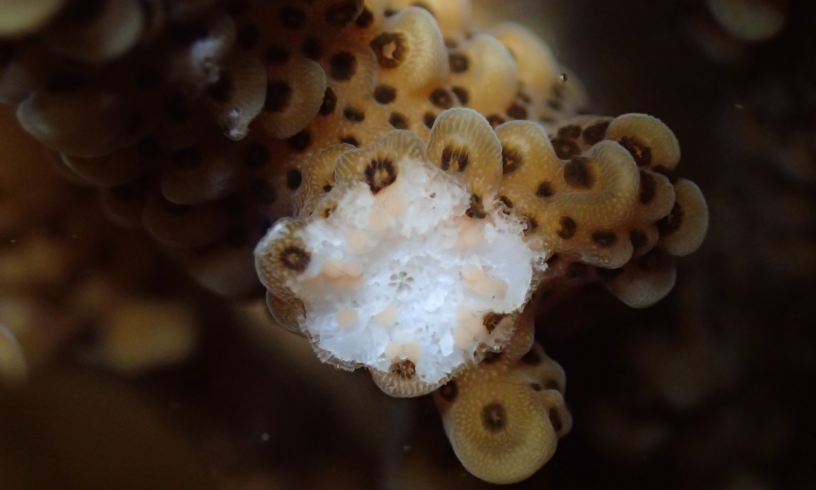 Coral gametes (sperm and eggs) are released into the water for external fertilization whose success depends on specific natural environmental conditions.