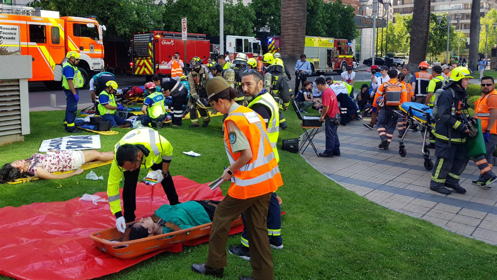 Emergency workers recently evacuated people to safety and treated those wounded in a mass-casualty event in the Chilean city of Las Condes.