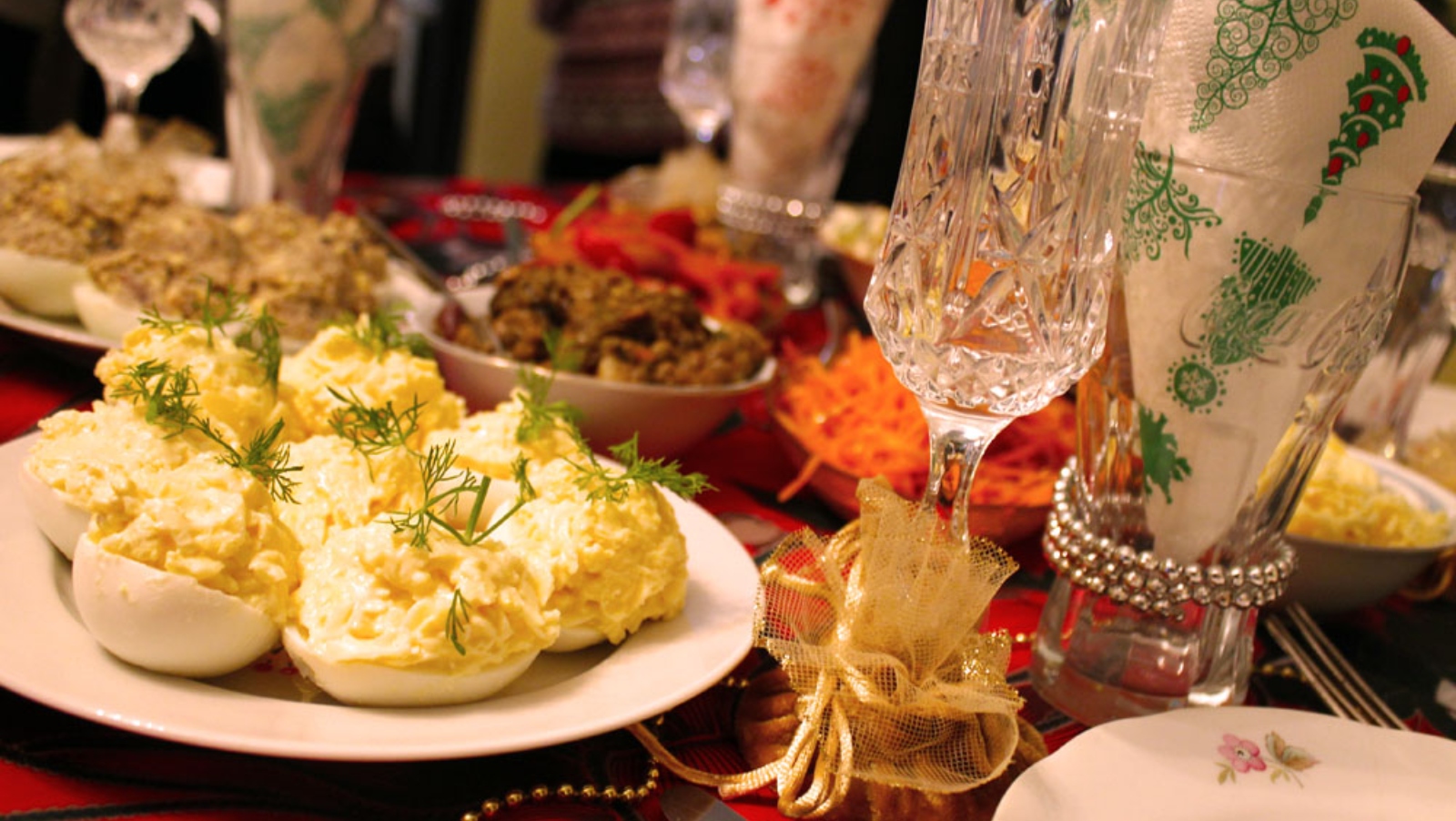 On the night of December 31, the whole family gathers around a table groaning with Russian finger foods such as pickled vegetables, chicken and egg salads and a wild assortment of desserts and begins a long night of feasting and that ultimate Russian tradition – raising toasts.