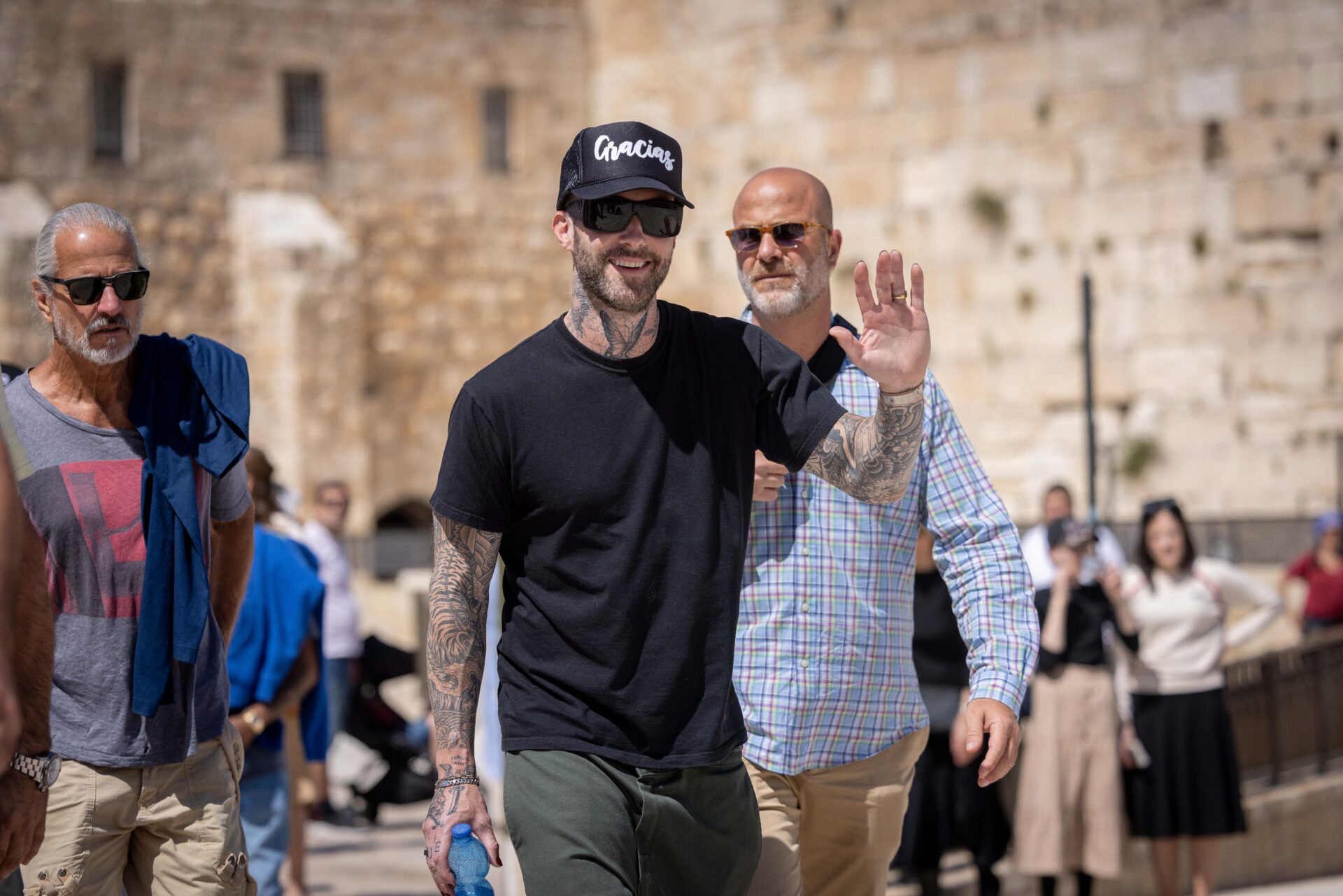 American singer Adam Levine from pop-rock band Maroon 5 took a tour of the Western Wall in Jerusalem on Sunday in the lead up to two concerts in Tel Aviv this week.