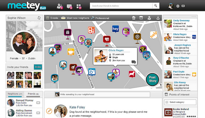 Meetey, founded in 2012, is advertised as “a fun, safe and easy-to-use platform that changes neighborhoods into social networks by letting users post stories, arrange neighborhood activities, organize block parties, launch meet-ups, schedule dates and more — and all from the comfort and convenience of their mobile device, laptop or desktop.”