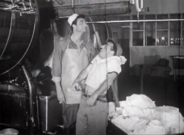 Milk production and the man who brings milk forth from the cow is celebrated in Health Is The Most Important Thing, a comedy short from 1958 produced for the Milk Production & Marketing Council. Most of the film was shot at the Tnuva dairies by director Nathan Gross and starred comedians Yankele Ben Sira (“playing 6 different roles”) and Gideon Singer.