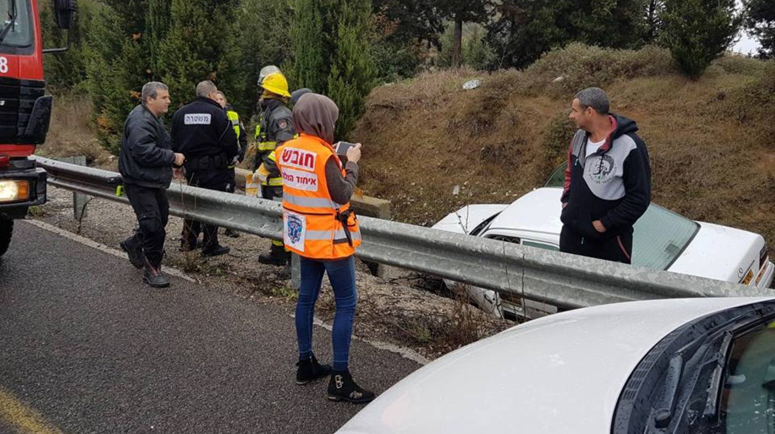 Sanaa Mahameed on the scene of a car crash in northern Israel. Photo courtesy of United Hatzalah