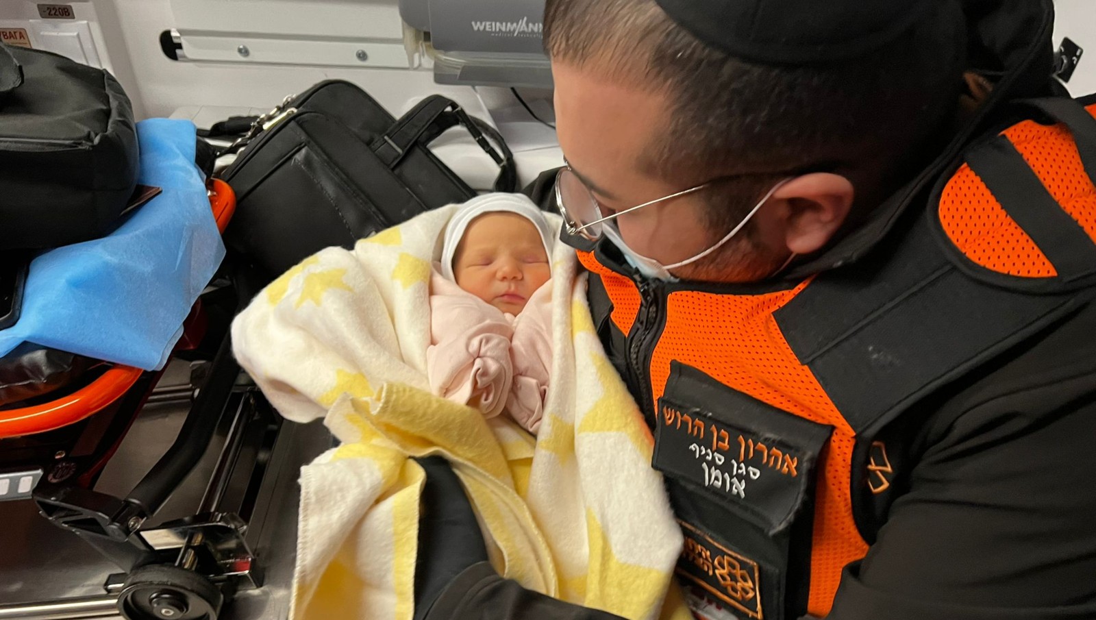 The mission was accomplished — the baby crossed the border. United Hatzalah volunteer EMT Vicky Tiferet, a mother of four, and I, received the baby.