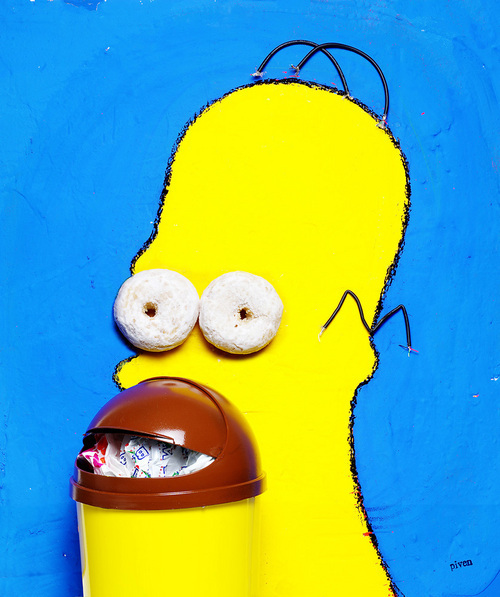 “Serendipity” may as well be Piven’s middle name. When TIME commissioned a portrait of the TV cartoon character Homer Simpson in 2002, his early efforts landed in the trash can. Looking more closely at that can, he realized it resembled Homer’s mouth. This was the result: