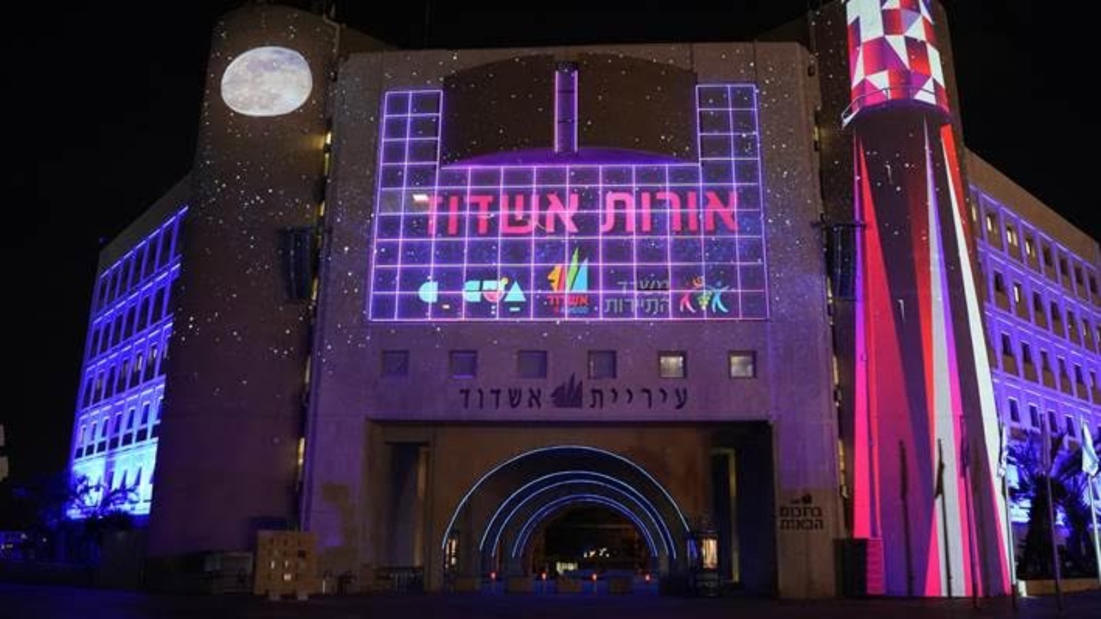 The Lights of Ashdod show begins at the top of City Hall, continuing to the walls of the Monart Cultural Center and on to Ashdod Sea Park.