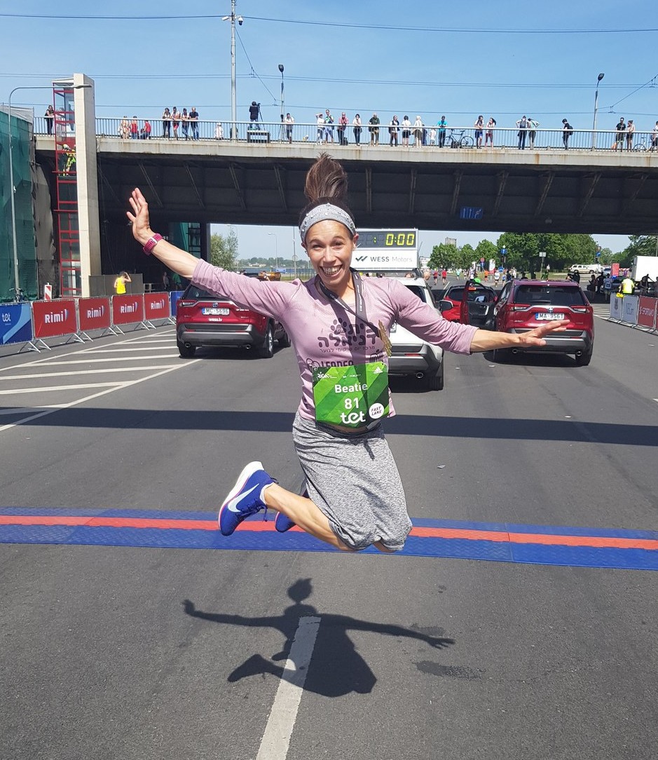 She rises at 5am to clock roughly 160 kilometers (100 miles) each week. She also strength trains thrice weekly on top of swim and/or cycle sessions a few times a week. On Sundays, she runs about 36 kilometers (22 miles); the standard marathon is 42 kilometers.