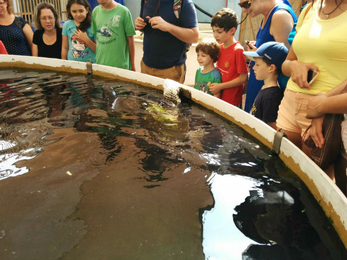 On our way to visit the turtles in the treatment area, Ori reminds us that “just like you don’t pet people who are hospitalized, you may not touch the turtles in the pools.”