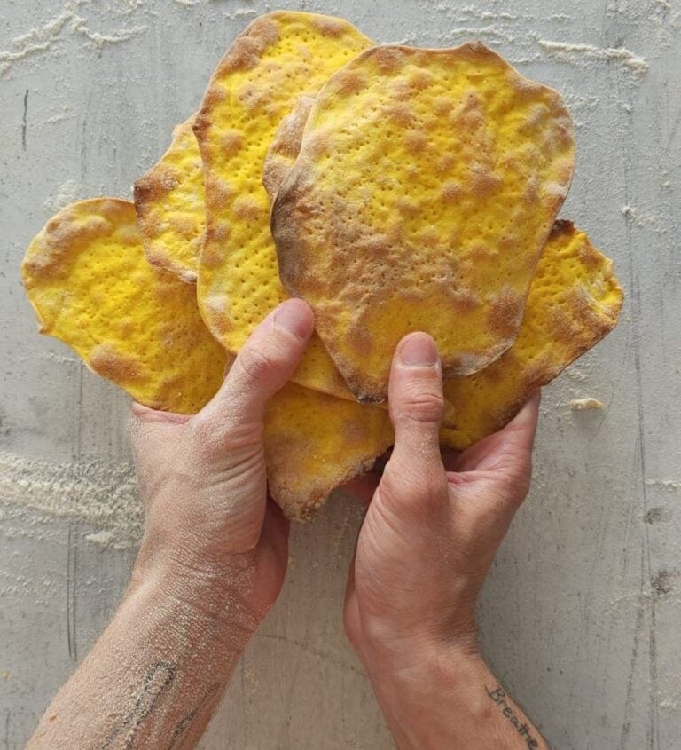 He is also sharing his matza-making content with his followers, including videos of how to make turmeric-tinted matza shaped like the yellow solidarity pins for the Israeli hostages held in Gaza.