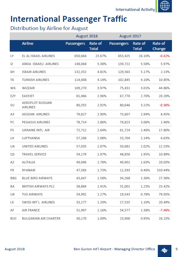 September is expected to continue to break record passenger traffic at Ben-Gurion International Airport with more than 2.2 million passengers on 14,000 international flights, a 15 percent increase in international passenger traffic compared to the same period last year.