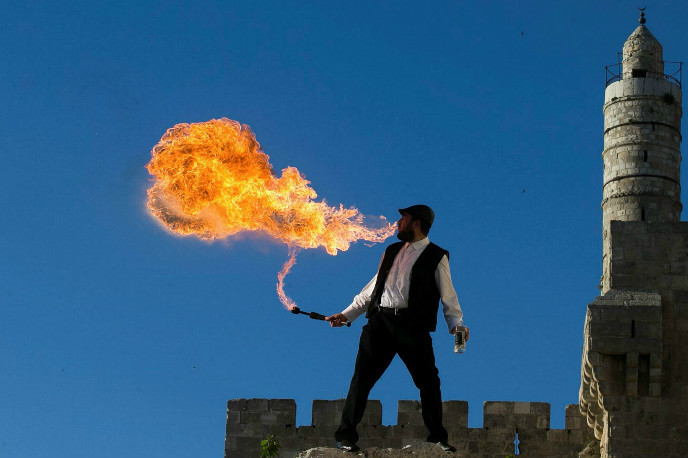 Ultra-orthodox Israeli, Meir Lebel – nicknamed the dancing Jerusalemite – has been as a fire breather since the age of 12.