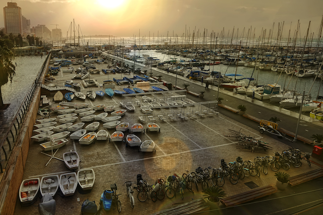 In this case, a photograph is the best we can do. Tel Aviv marina is of course beautiful in the sunshine too, but it takes on a special kind of feel when the weather is changeable and the streets are wet.