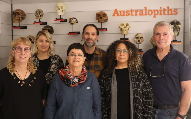 From left, Israeli researchers Dr. Irit Zohar, Dr. Marion Prévost, Prof. Naama Goren, Dr. Guy Sisma-Ventura, Prof. Nira Alperson-Afil, Prof. Israel Hershkovitz. Photo courtesy of Tel Aviv University