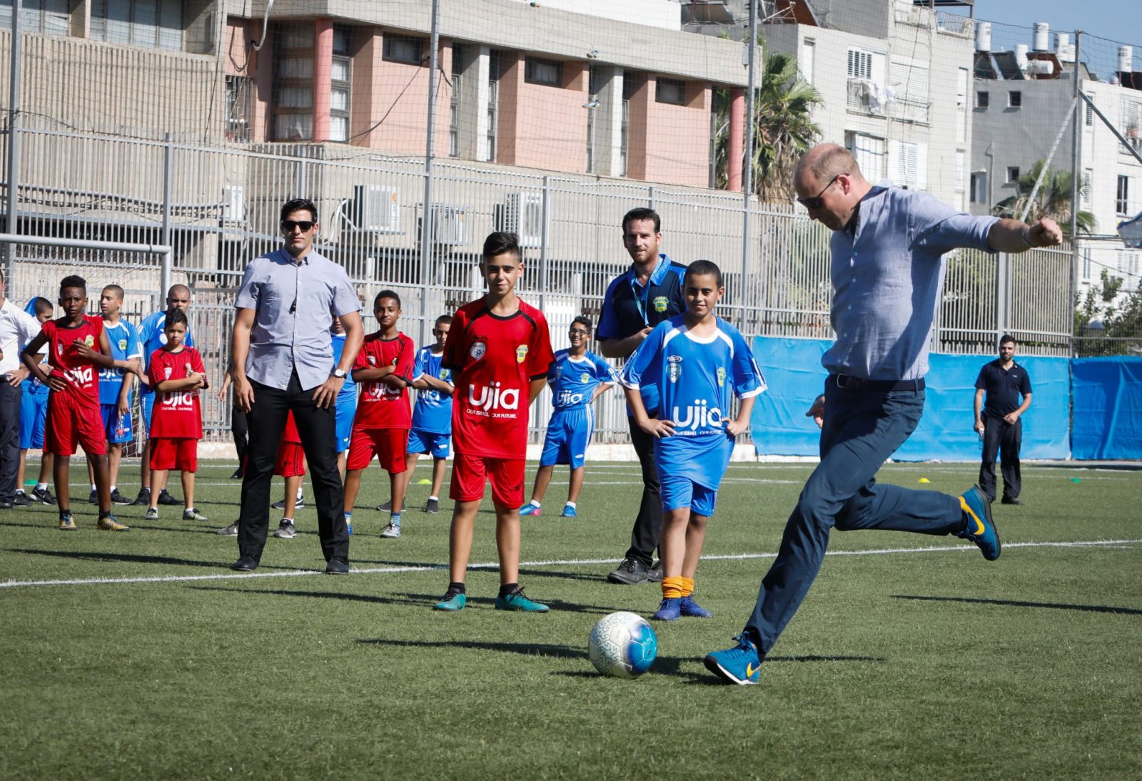 He then traveled to the President’s Residence for a meeting with President Reuven Rivlin, before heading from Jerusalem to Jaffa for a soccer match between Jewish and Arab Israeli children. The match took place at Neve Golan Stadium and was organized by The Equalizer and the Peres Center for Peace and Innovation.