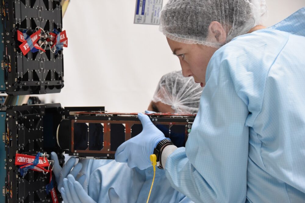 A technician loading SpacePharma’s DIDO-3 satellite for micro-gravity research into the launcher. Photo courtesy of Dr. Paul Kamoun
