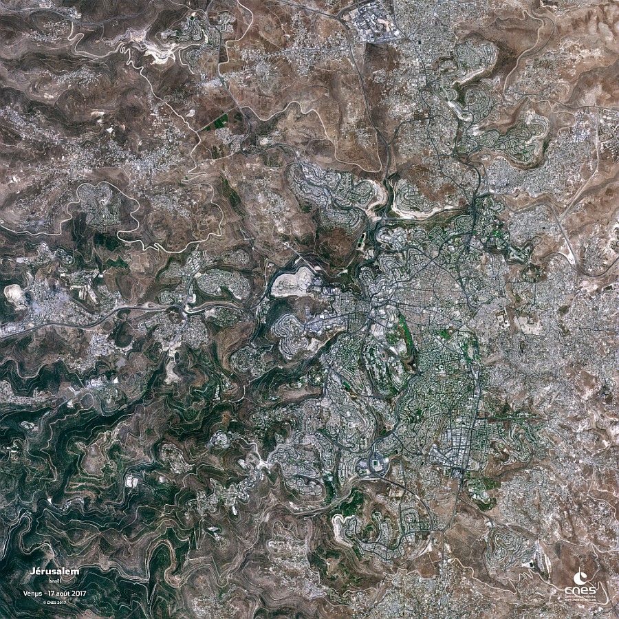 The Jerusalem region imaged by VENuS, the first cooperative Earth observation program of Israel (ISA) and France (CNES). Image courtesy of CNES