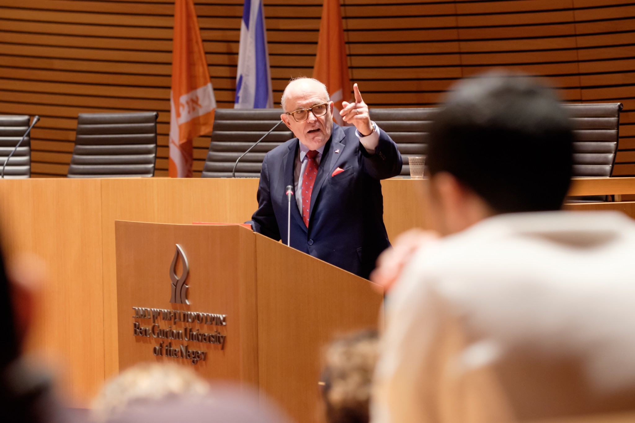 Before addressing students and faculty, Giuliani also visited the Deutsche Telekom Innovation Labs@BGU where he met with representatives of the University, EMC, JVP, and CyberSpark.