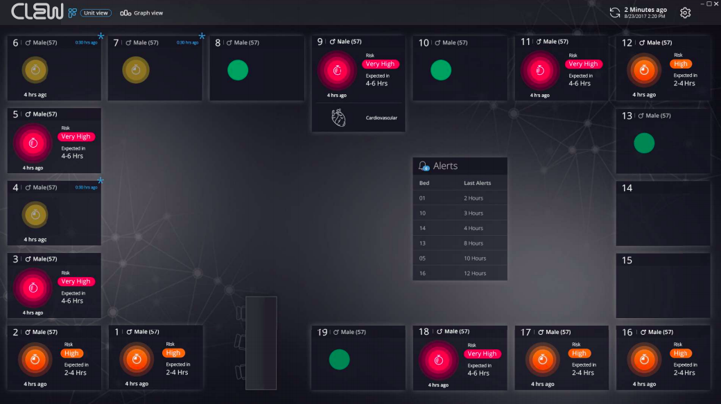 Clew takes a different approach. Its product is not just an AI-powered research tool but plays an active role in the ICU, allowing doctors to see at a glance the status of every patient in the unit.
