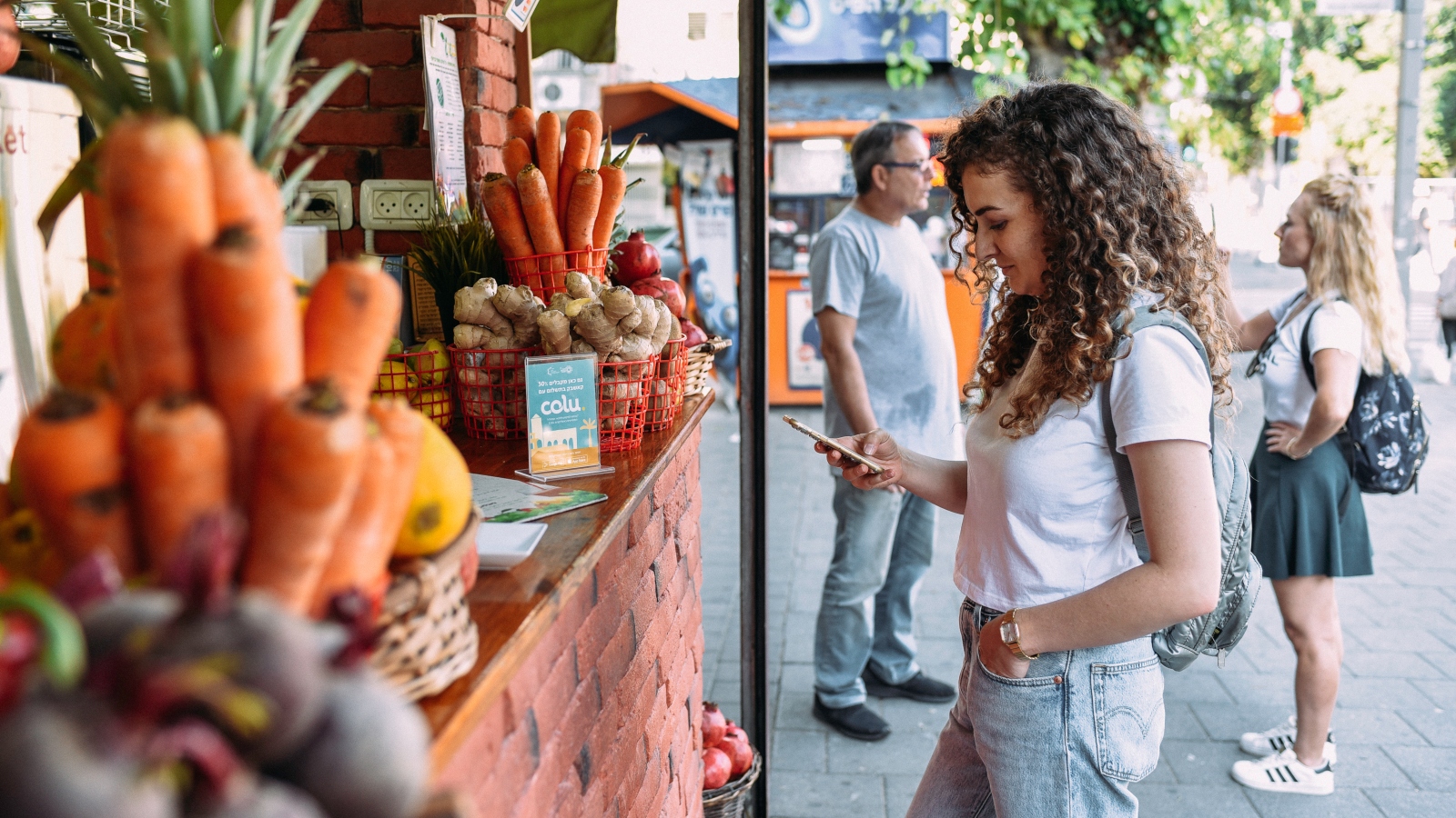 A Jerusalem Boulevard greengrocer in Tel Aviv participated in the Colu cashback pilot. Photo by Julia Berezina