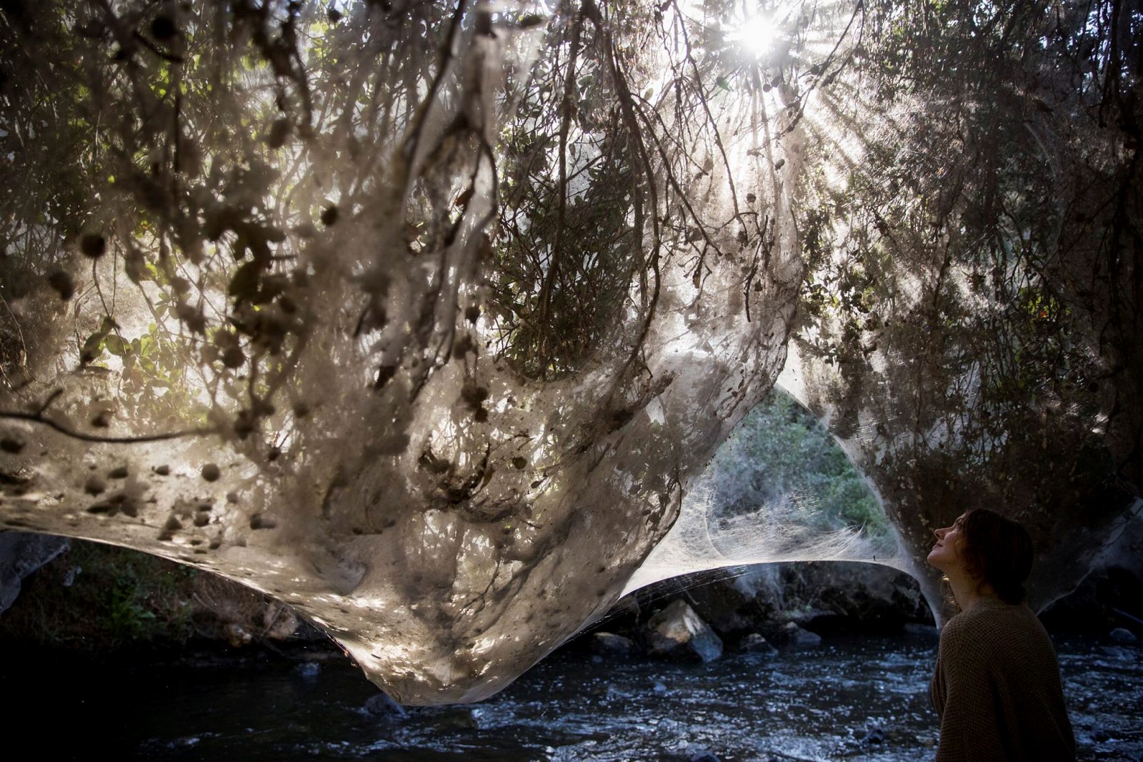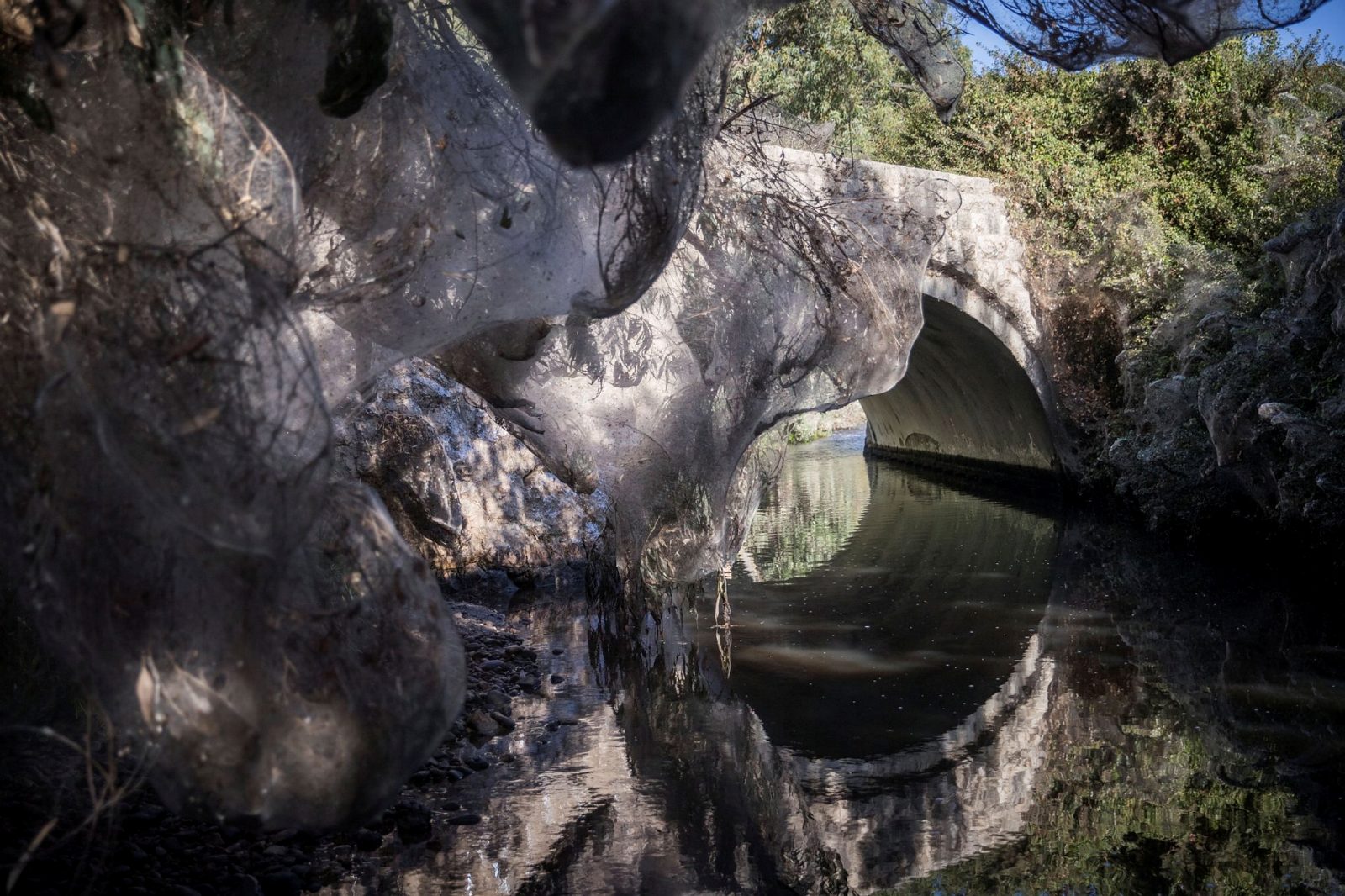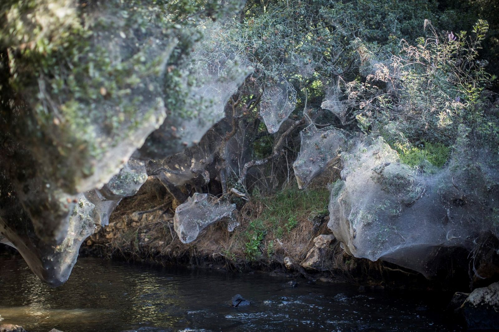Spiders turn Jerusalem creek into ethereal haunted forest