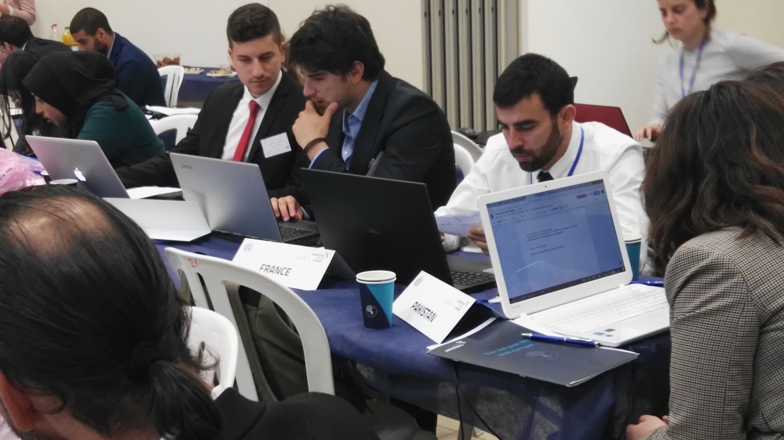 Competitors were divided into two rooms, the formal discussion room and the research room. In the discussion room, one representative from each country negotiated with the other countries. In the research room, two representatives of the other countries watched the discussion room live and conducted research accordingly to assist their representative in the formal discussion room.