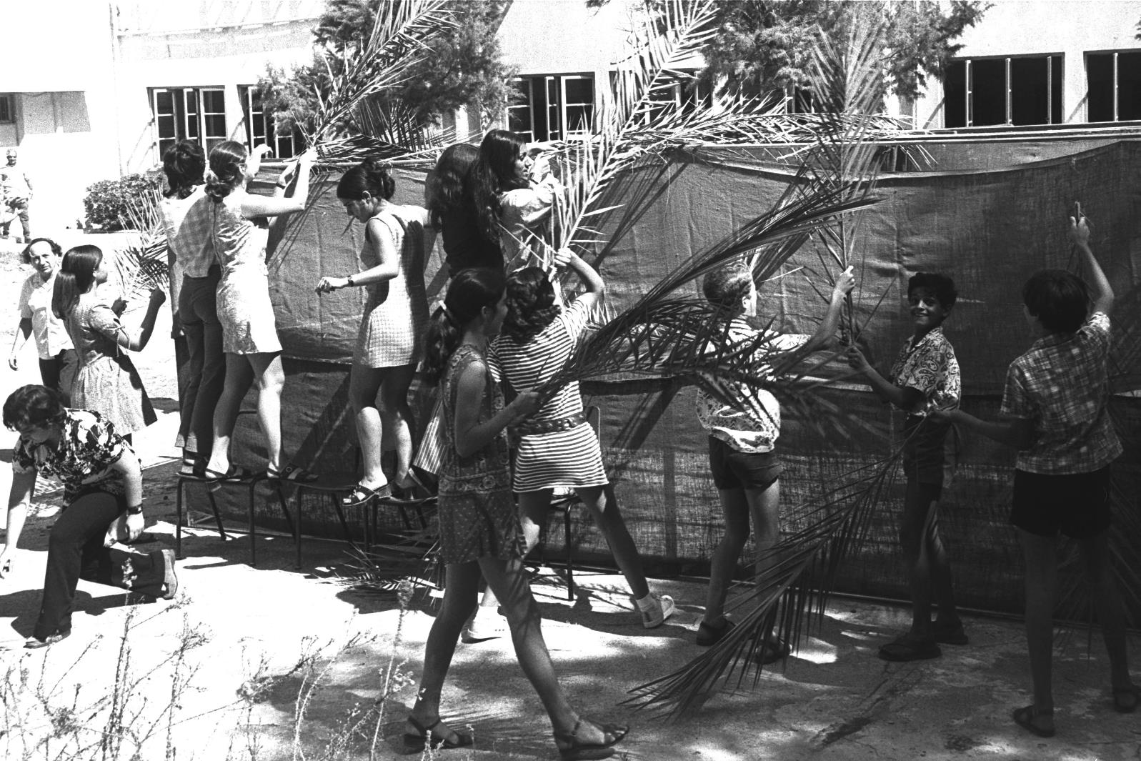 Israeli schoolchildren build a sukkah, 1971. Photo by Moshe Milner/GPO