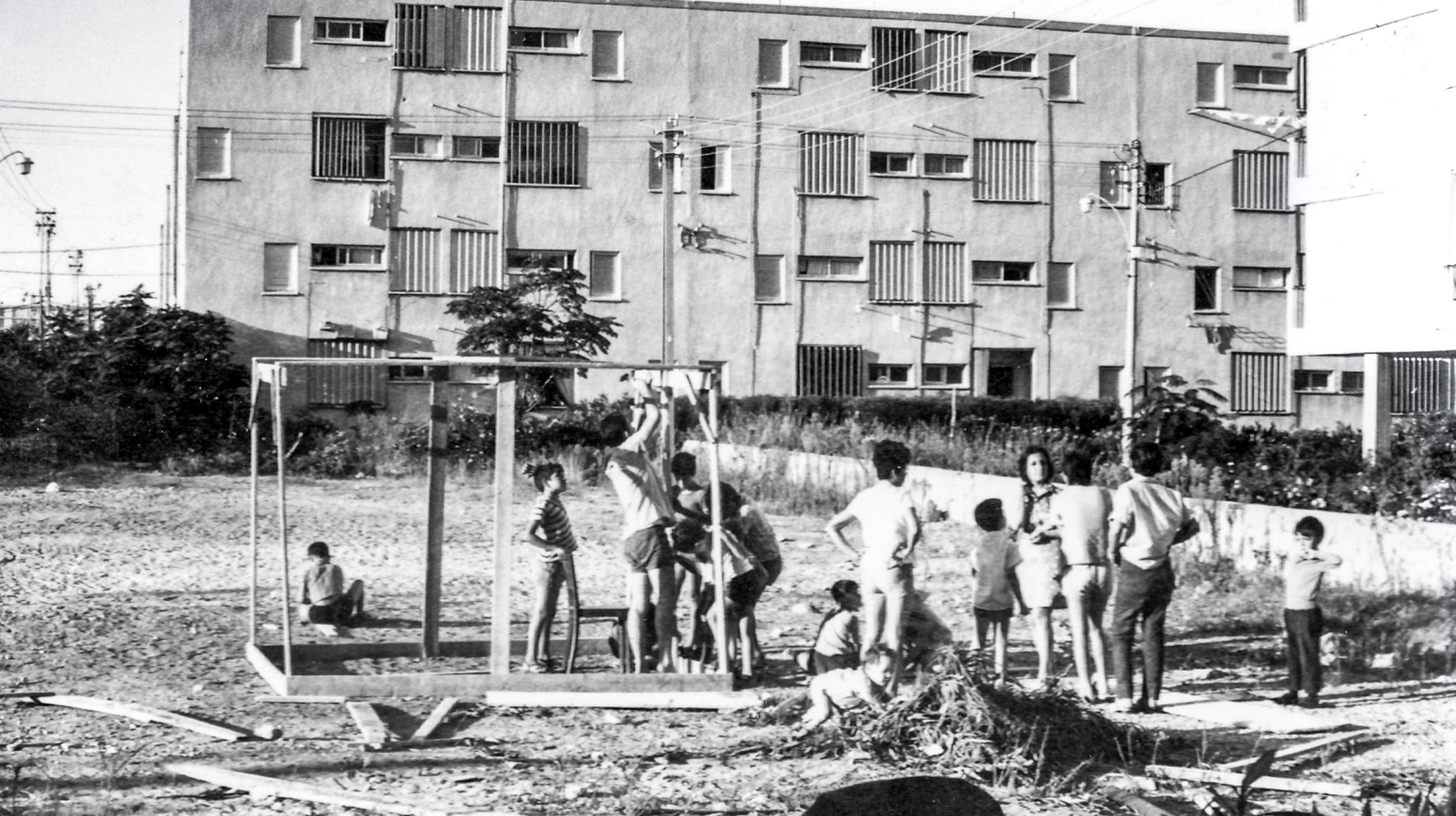 Sukkah-building in Kiryat Ono, 1960s. Photo via PikiWiki Israel