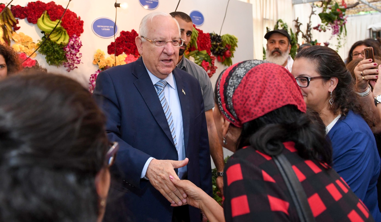President Reuven Rivlin welcoming the public to the sukkah at the President’s Residence in Jerusalem, October 9, 2017. Photo by Mark Neyman/GPO