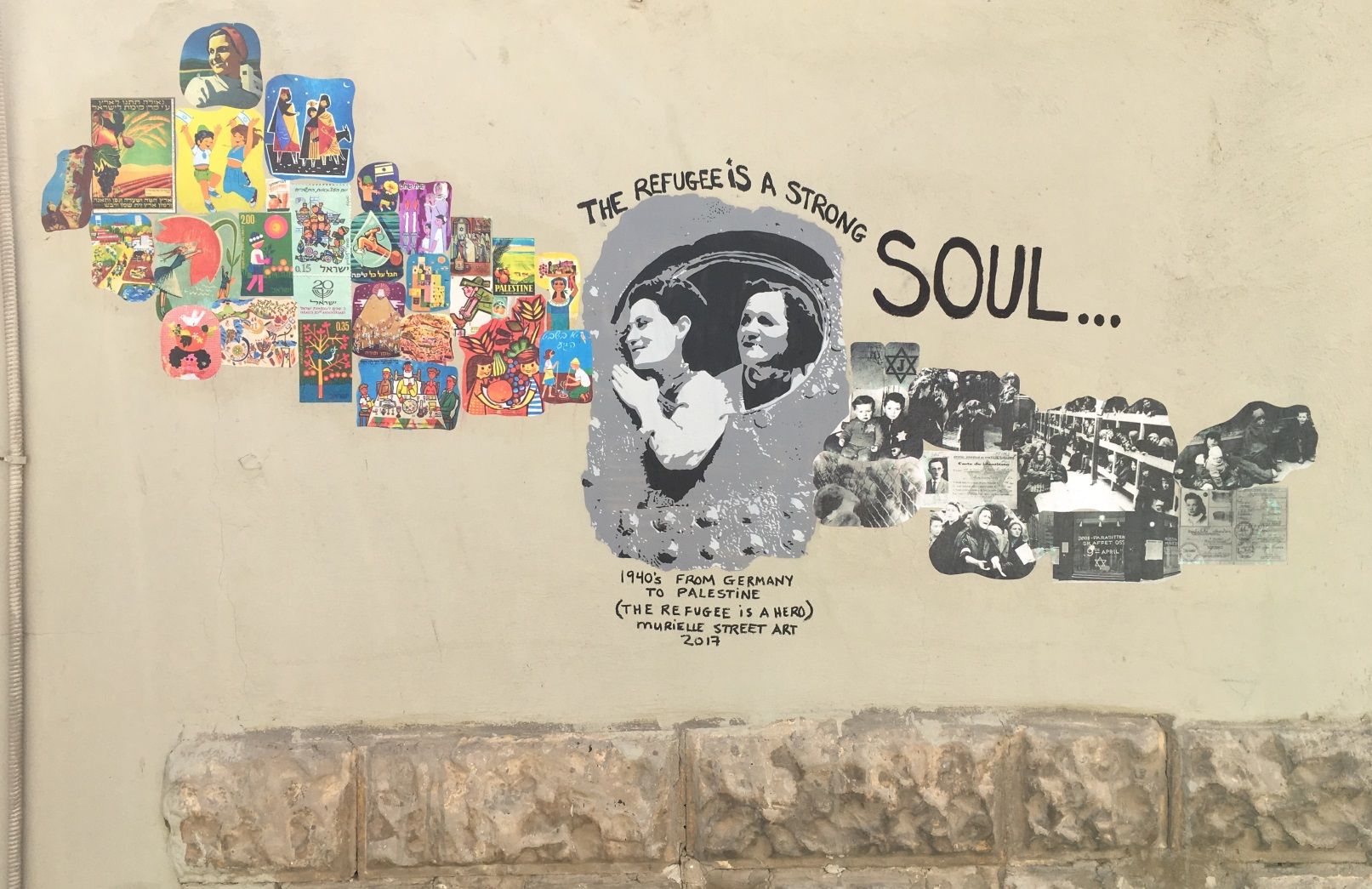 Israeli street artist Murielle Cohen wants viewers to ponder that statement when observing her newest collage series, “Refugees,” executed on walls and buildings in Tel Aviv’s Neve Tzedek neighborhood and surrounding areas.
