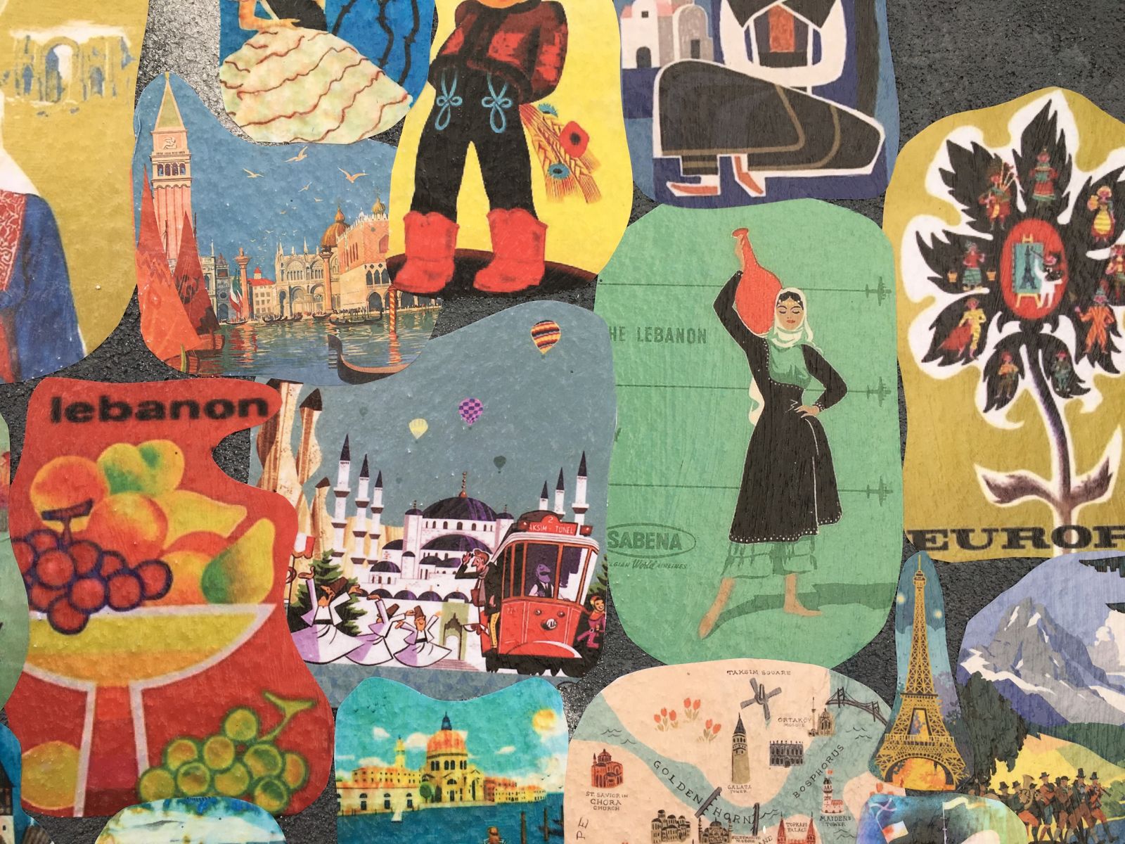 “I am planning them in twos because each takes a lot of research,” says Cohen. “I’m taking a break before the third and fourth. A lot of preparation is involved in choosing and printing the images and cutting them. I use old stamps, book covers, poetry and other images.”
