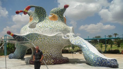 Among more than 90 whimsical Sergeev creations are giant birds and eggs at an industrial park in Netanya, jellyfish and coral climbing structures in Eilat’s Garden of the Senses, and wheelchair-accessible play structures at a government-planned Kings Forest playground for disabled children near Kiryat Gat.