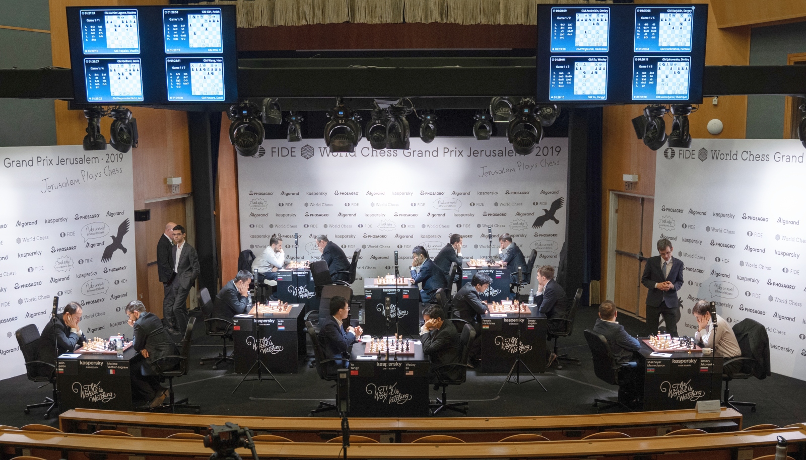 The Grand Prix Series 2019 chess matches taking place in Jerusalem through December 23 (except December 20) are broadcast live at worldchess.com, the official FIDE broadcasting platform.