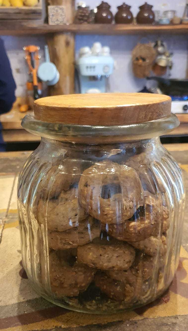 A glass jar filled with cookies