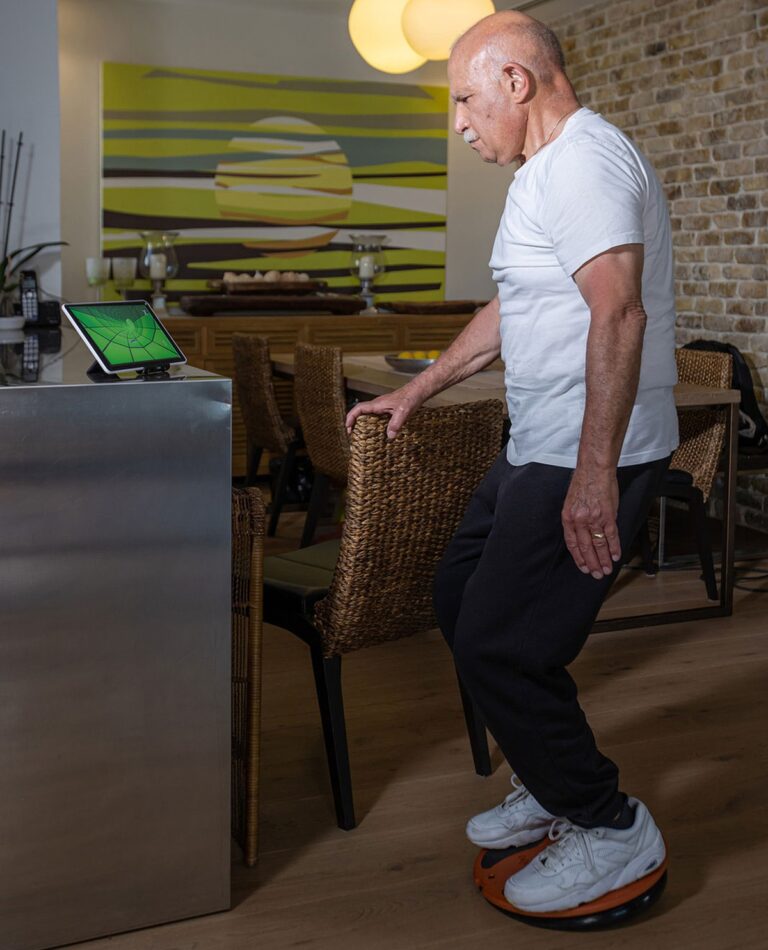 “Unlike a ‘dumb’ device, we have the ability to measure balance using a movement sensor,” he explains. “We can, in fact, evaluate the improvement or the level of a person’s balance.”