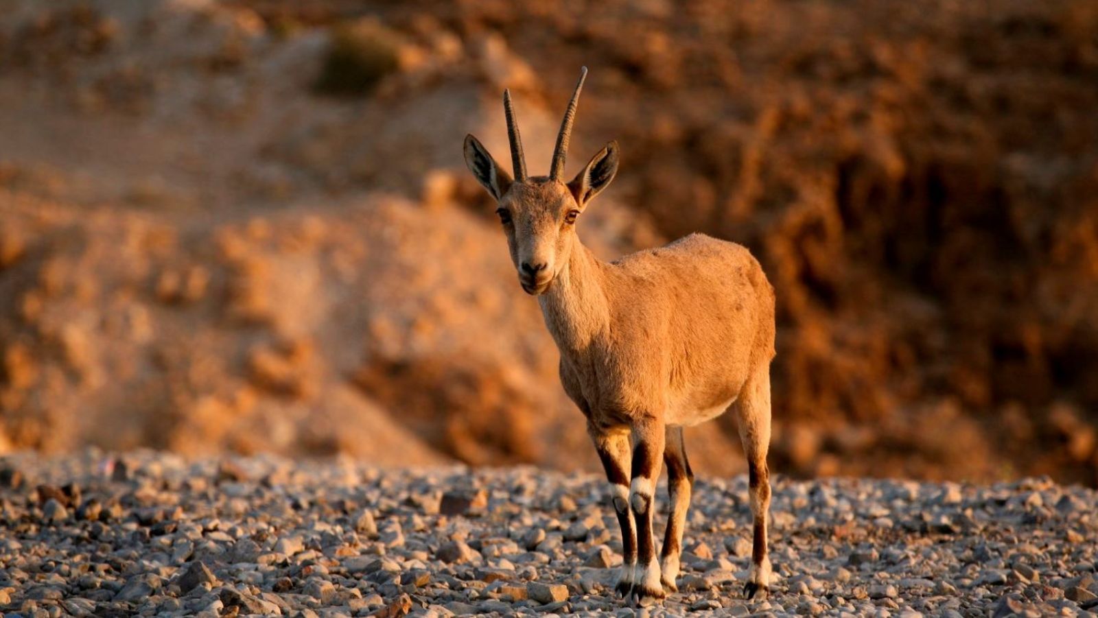 A Nubian ibex on cliffs near the Dead Sea at sunrise. Photo by Matanya Tausig/Flash90