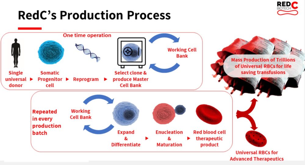 RedC Biotech licensed the technology to mass produce stem cells exclusively for red blood cells from another Israeli startup, Accellta. Accellta also is working as a subcontractor for RedC Biotech to scale up the process ahead of clinical trials.