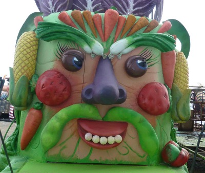 There’s a giant falafel, an enormous hamburger, a huge schnitzel and cartoon characters laden with food. This year’s theme, Tastes of Childhood, also includes Peter Pan covered in ice cream cones, Popeye eating spinach, and a giant’s face made of fruit and vegetables.