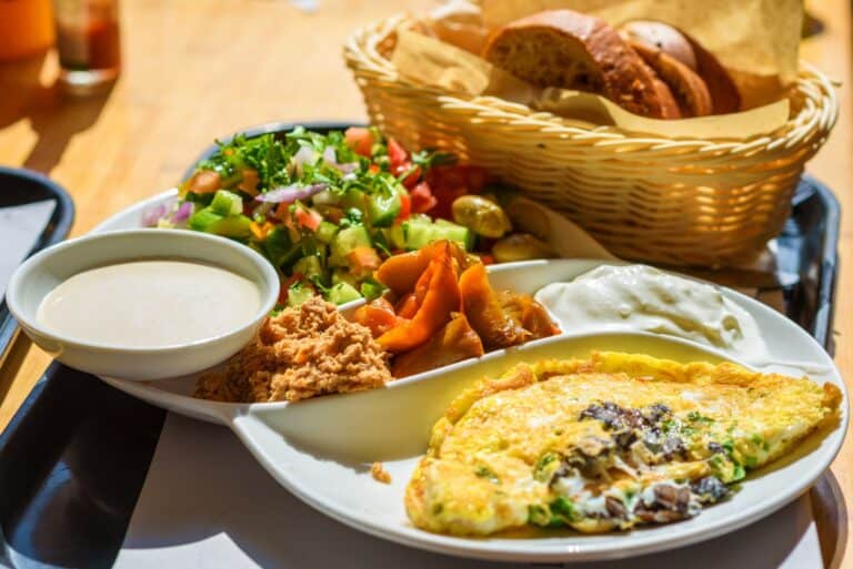 Speaking of mornings, Israeli breakfasts are a sight to behold. While Israeli hotels really pull out all the stops with a dazzling array of food at breakfasts, Israeli homes are not far behind – especially on the weekend.
