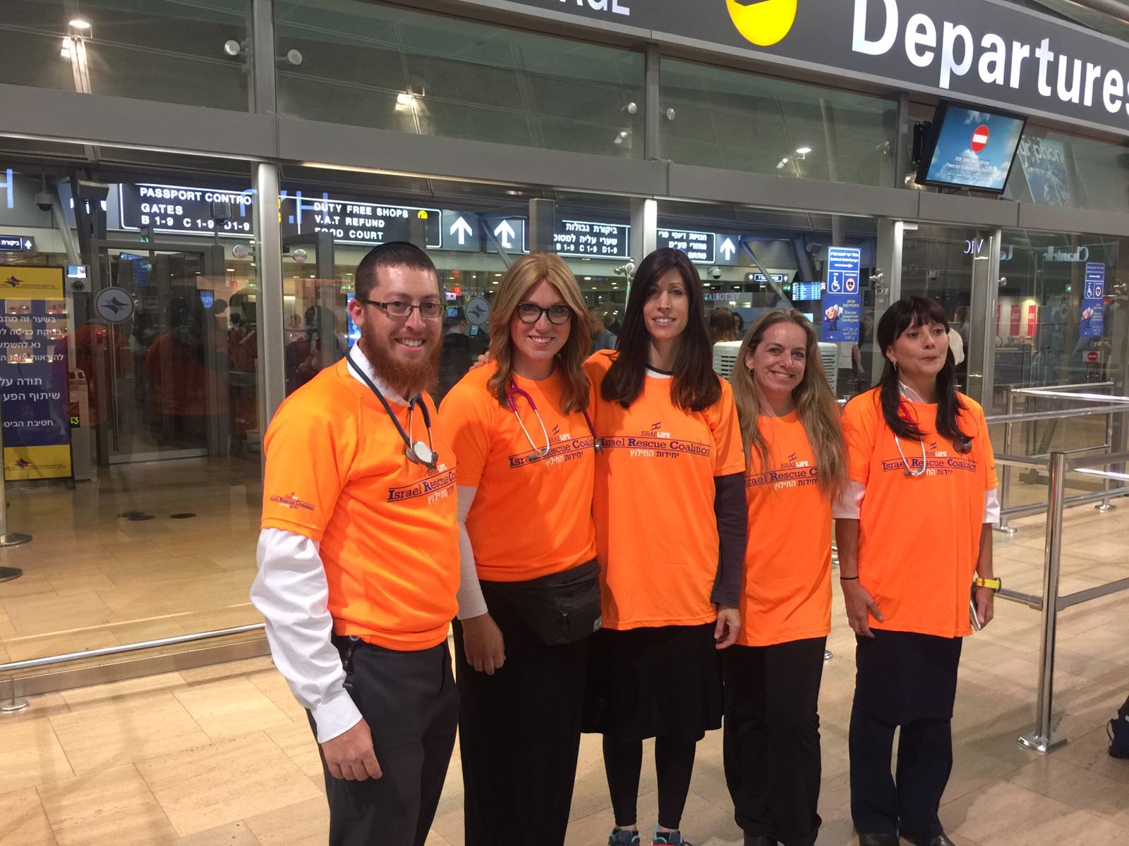 Five members of the United Hatzalah mission to Texas, at Ben Gurion Airport before their flight. Photo by United Hatzalah
