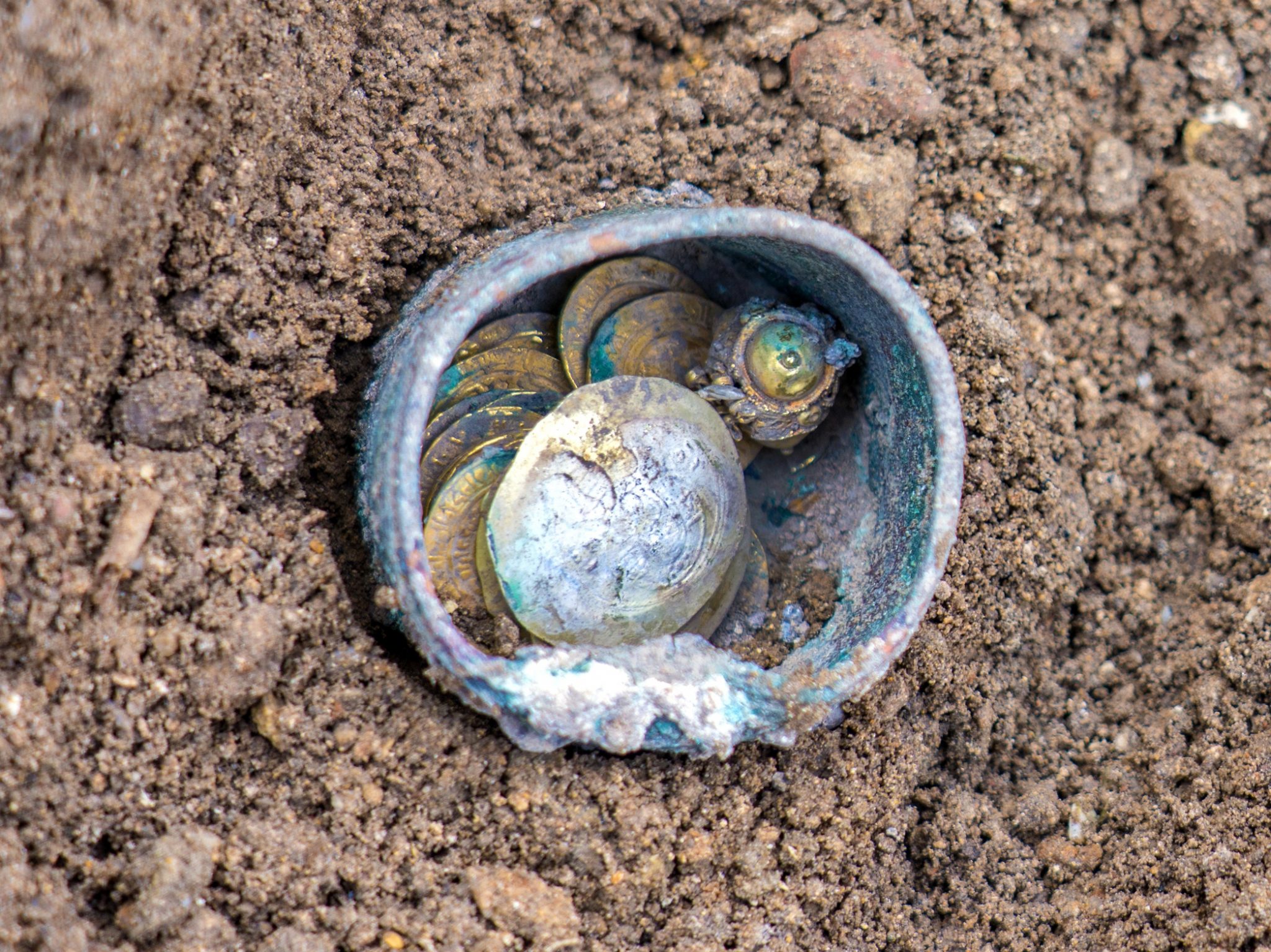 Israeli archeologists uncover unique cache of ancient coins and gold earring ahead of Hanukkah holiday.