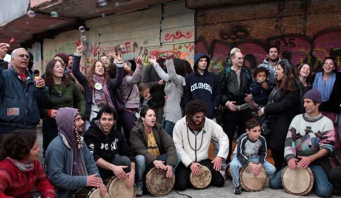 As the sun begins to set over Tel Aviv on Fridays, a crowd gathers to welcome the weekend with a chorus of bongos.