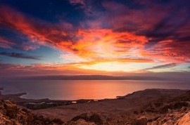 Sunset, a still and silent sea, and desert landscape combine to create a memorable